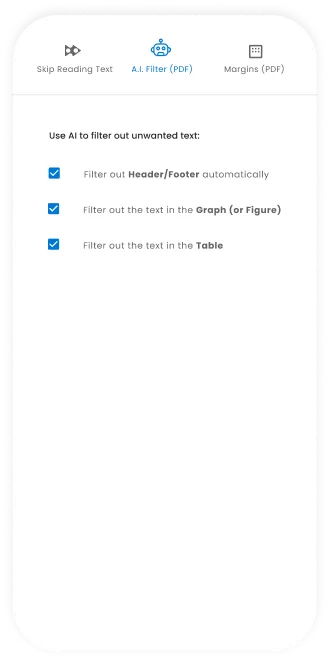 Both our Plus and Premium Subscriptions feature all of our paid features (MP3 Download, Camera Scanner for physical text, Ask.AI and AI Text Filtering).